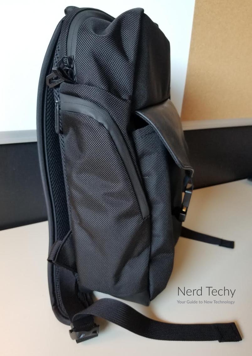 最后,还有两个垂直的存储袋,两边各有一个。这些口袋有一个拉链闭合,用高质量的YKK拉链从顶部向下扫到前面。这种封闭的方向使口袋容易访问,甚至不采取袋所有的方式。只要把背包转到一边,你就能轻松地打开口袋。这使得侧口袋是一个很好的地方,水瓶,或其他经常访问的项目。