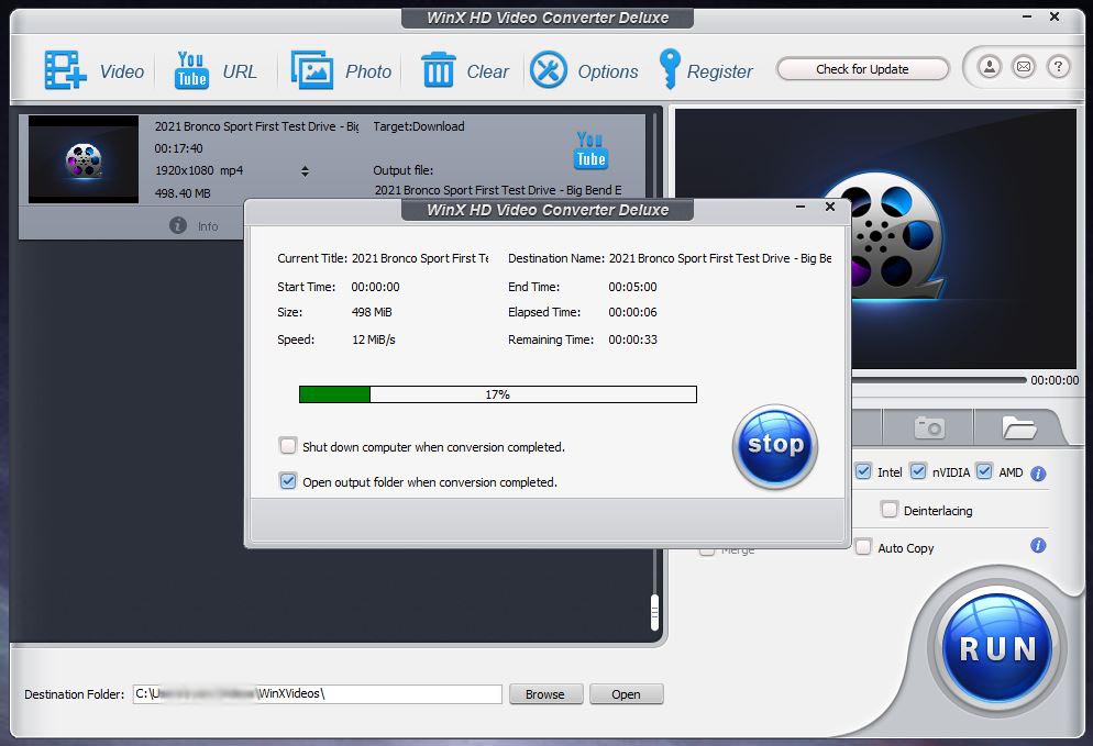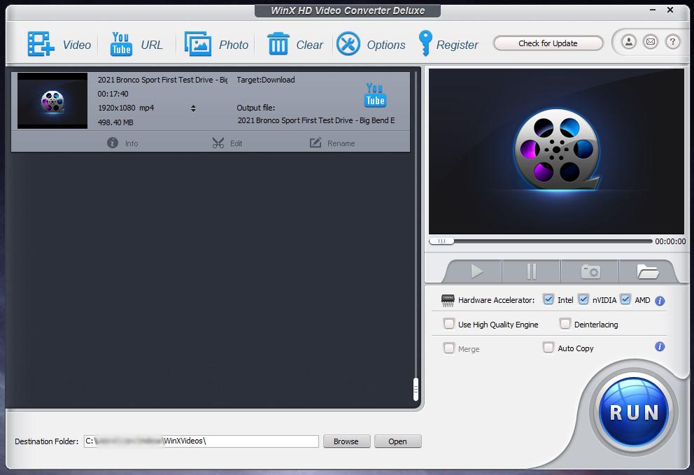 有其他选项可帮助您加快转换过程。最常用的是自动复制功能。在此模式下,软件不会浪费时间“转换”数据不需要转换。例如,您可能需要三个不同分辨率的相同MP4视频。但是,所有三种版本都可能使用相同的128kbps MP3音频。在自动复制模式下,WinX HD软件只需复制该音频,为您提供宝贵的时间。您还可以使用硬件加速度来加快默认启用的硬件加速。旧版本的WinX仅支持Intel和NVIDIA芯片组上的硬件加速。但在最新版本中,还为AMD架构添加了支持。