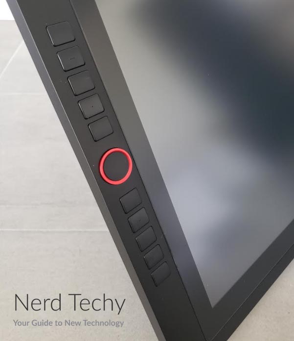 框架由黑色塑料构成,具有中等纤细的边框。在右上方有足够的空间来放置一排软触摸控件。按钮很小,但它们被照亮了,很容易看到。这些控制着显示器本身的功能。有一个电源按钮和一个菜单,菜单上有各种调整选项。在两边,你会看到10个按钮列。在每一列的中间,有一个带有红色边框的旋转表盘。这为您提供了总共20个按钮和两个拨号,所有这些都是可定制的。您可以将表盘映射到常用的功能,如画笔大小。类似地,按钮可以被编程成你经常使用的任何快捷方式。