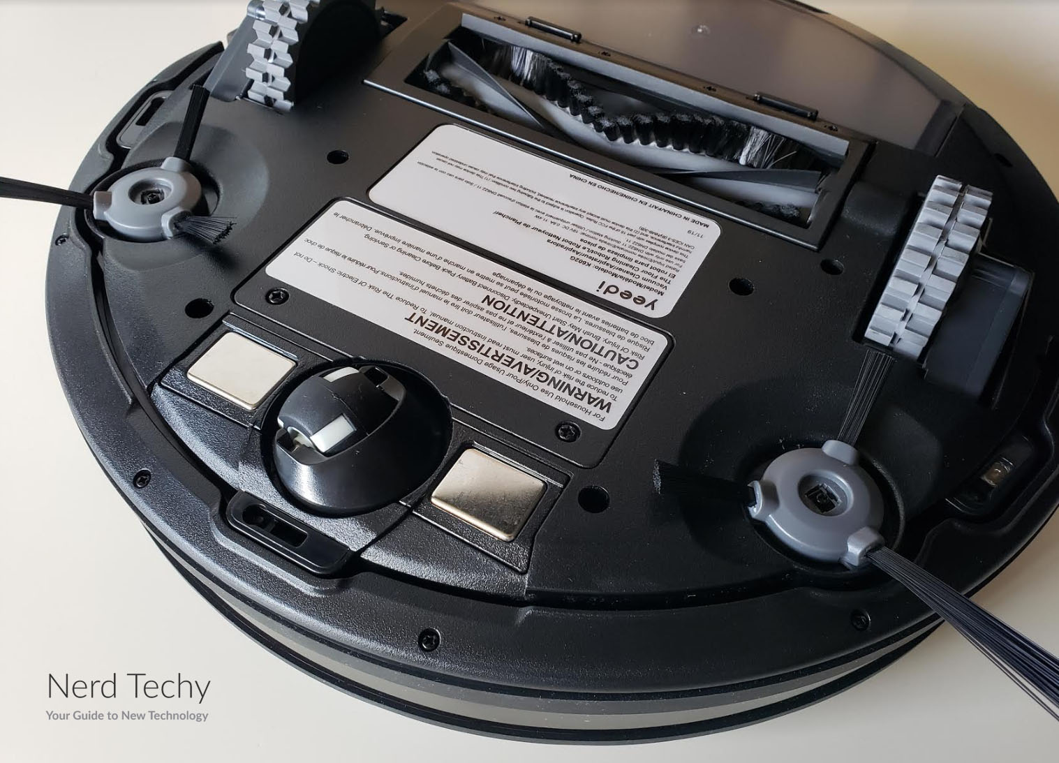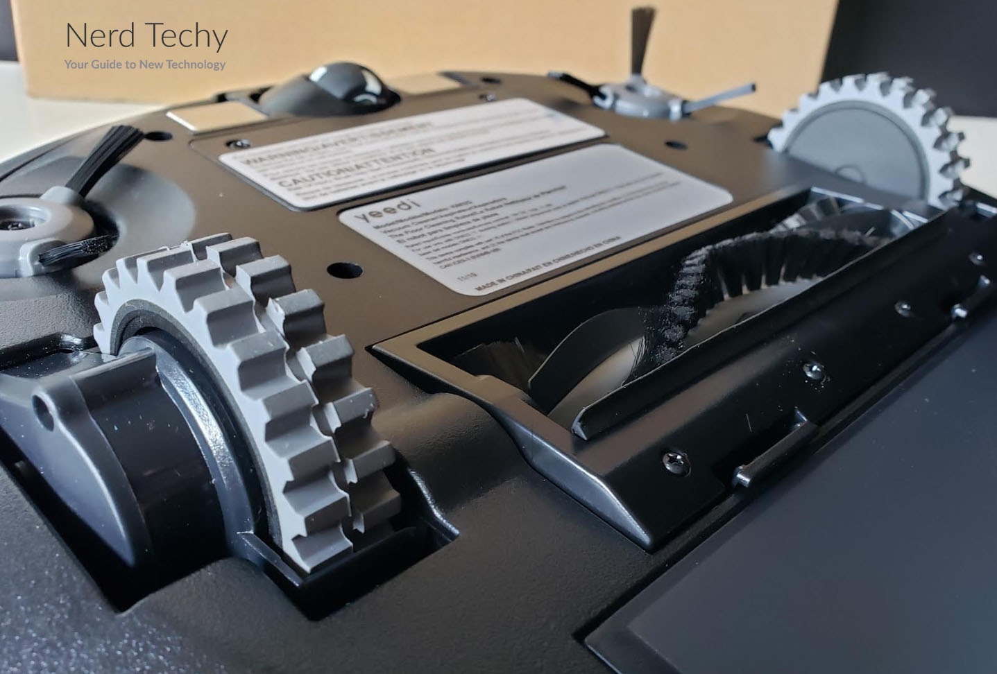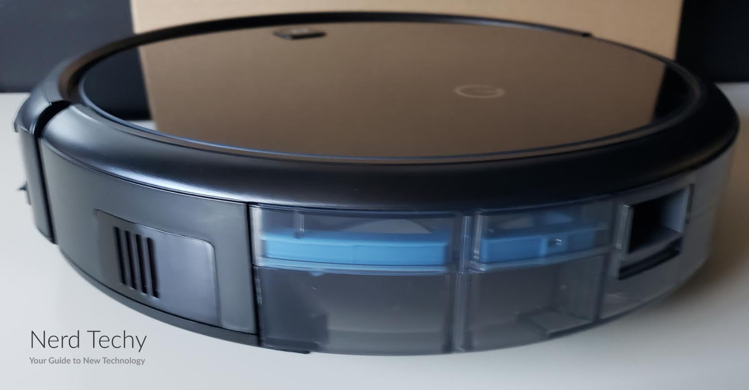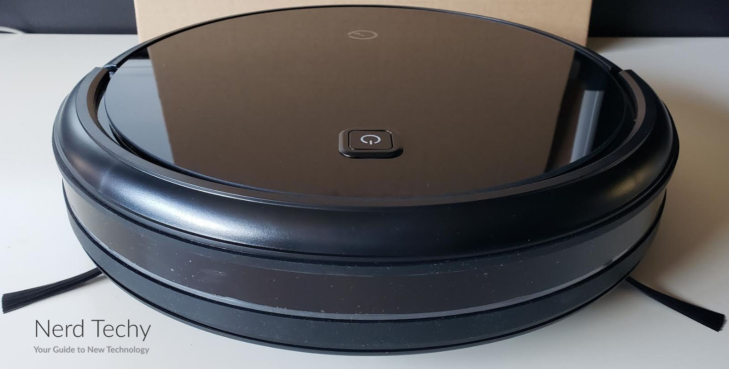 真空吸尘器的顶部由防刮伤钢化玻璃构成。踢打、重击和掉落不会对它造成伤害,它对宠物造成的伤害免疫。平心而论,钢化玻璃并不是防弹的;如果你把砖头扔在它上面,它就会裂开。但这仍然是一个重大的升级,比典型的机器人真空吸尘器脆弱的ABS塑料顶部。一个小的激活按钮突出通过玻璃,使操作容易。还有一个Yeedi标志,当你的吸尘器运转时,它就会发光。