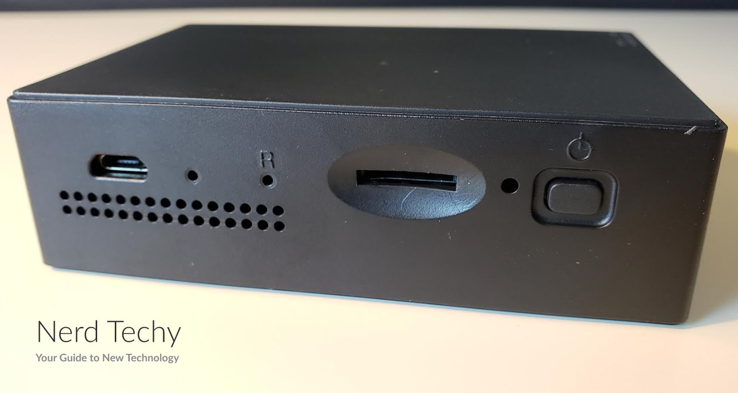 Z82的大部分功能部件位于外壳的背面。从左边开始,有一个Micro USB接口,用来给电池充电。接下来,有一个小针孔,里面装着摄像头的复位按钮。在这些下面,有一个网格状的孔覆盖着麦克风。往左边走,有一个用于视频存储的SD卡槽。最后,还有一个简单的开关电源按钮。差不多够了!在设计方面,Z82是最简单的。